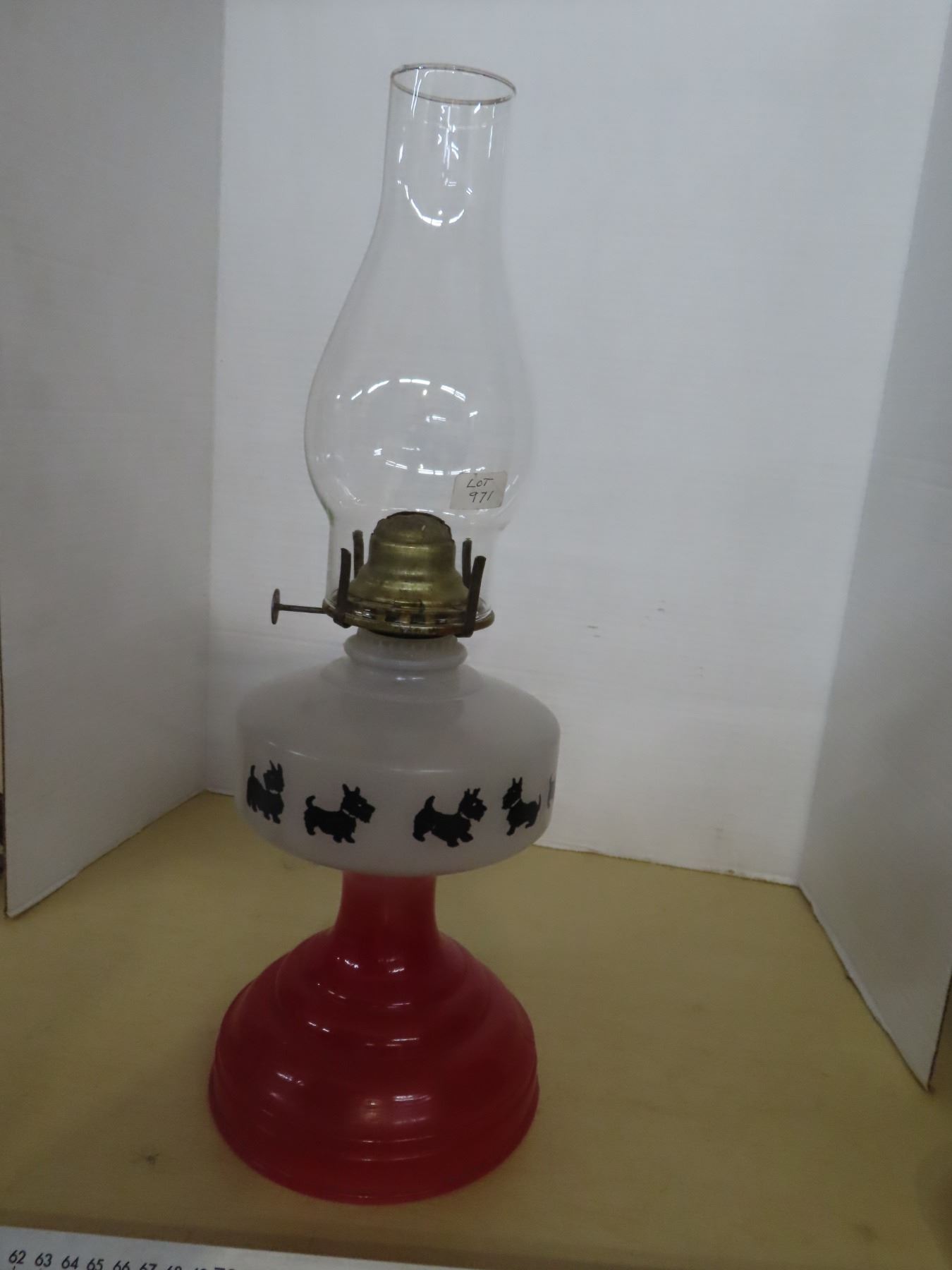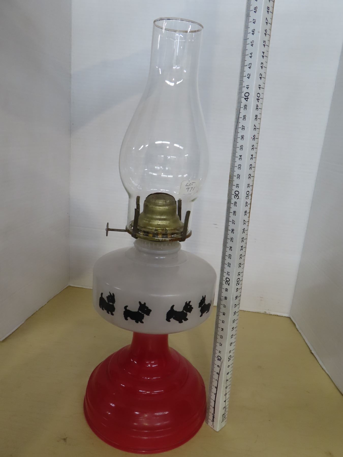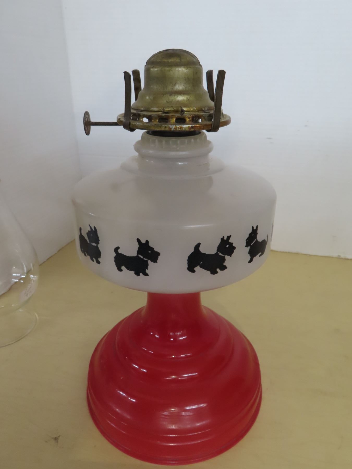 Scottie dog oil lamp and shade