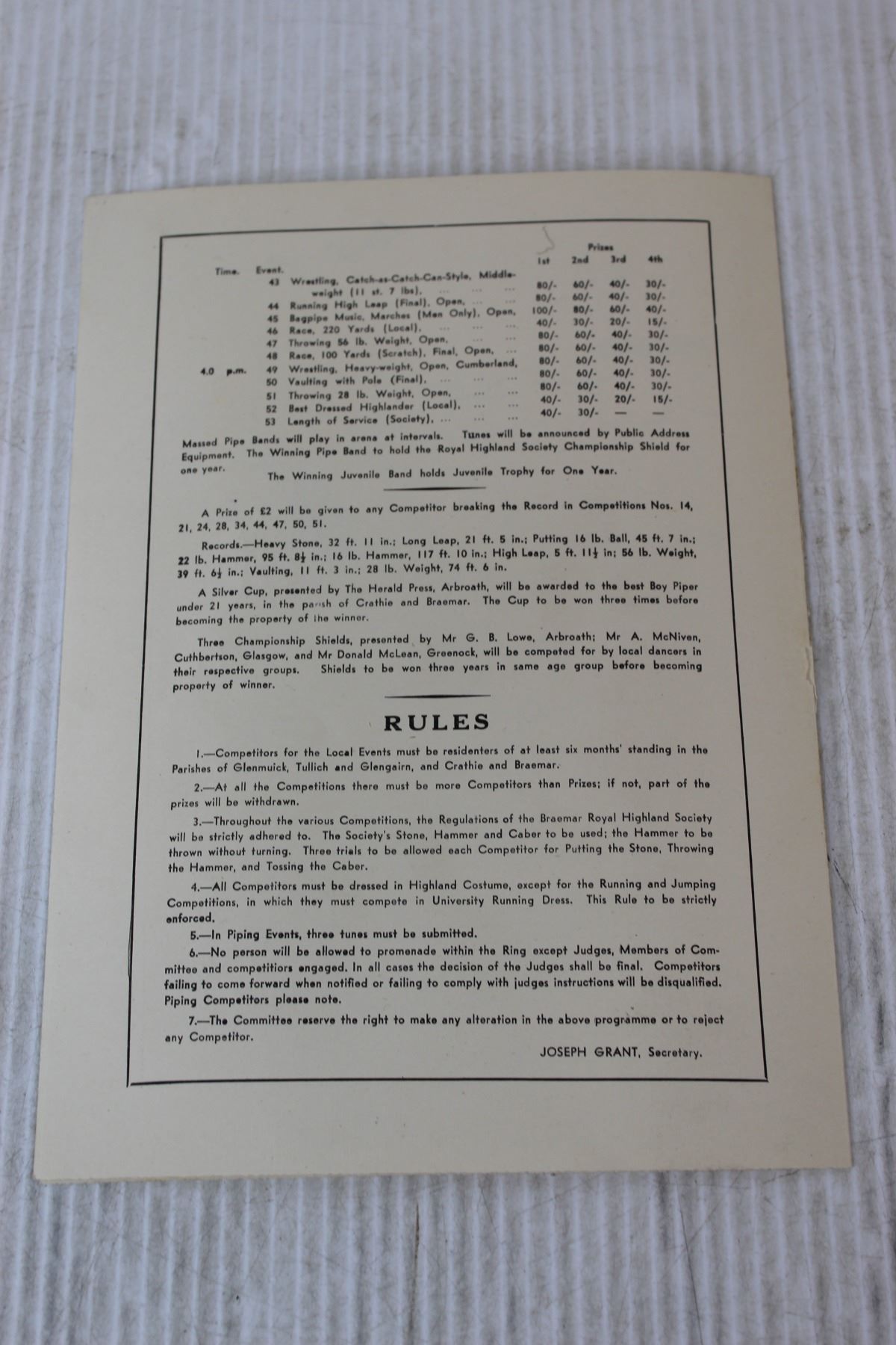 Scottish Annual Braemar Gathering Book, Program - Sept. 8, 1949