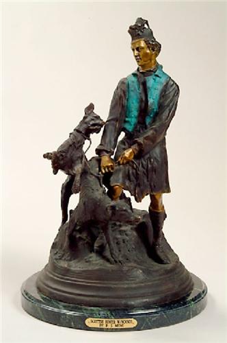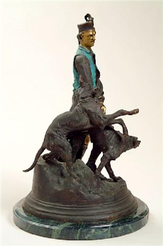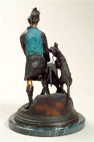Mene, P.J. (French 1810-1879). Cast and cold painted bronze, marble pedestal. 20” by 10” by 10”