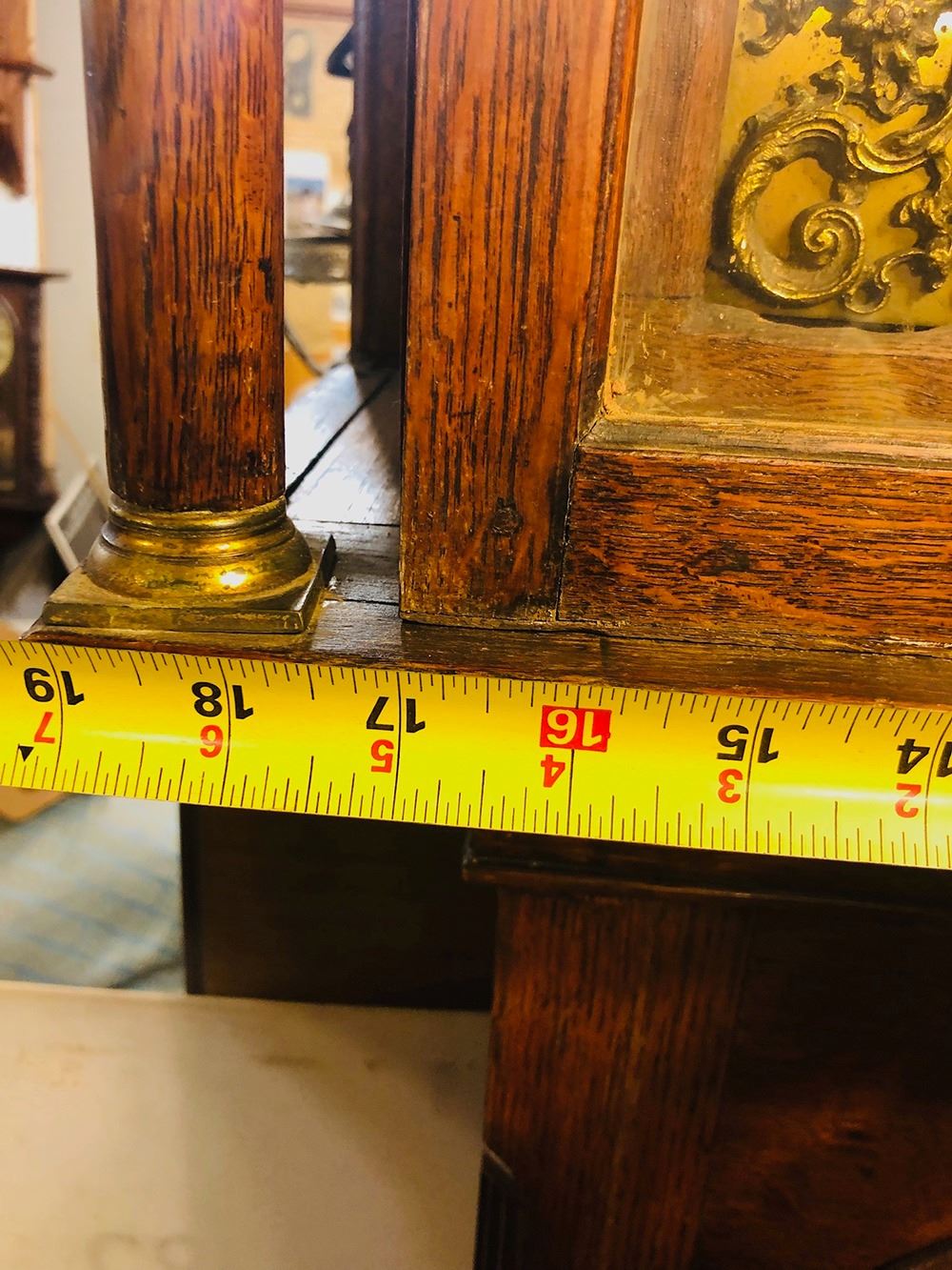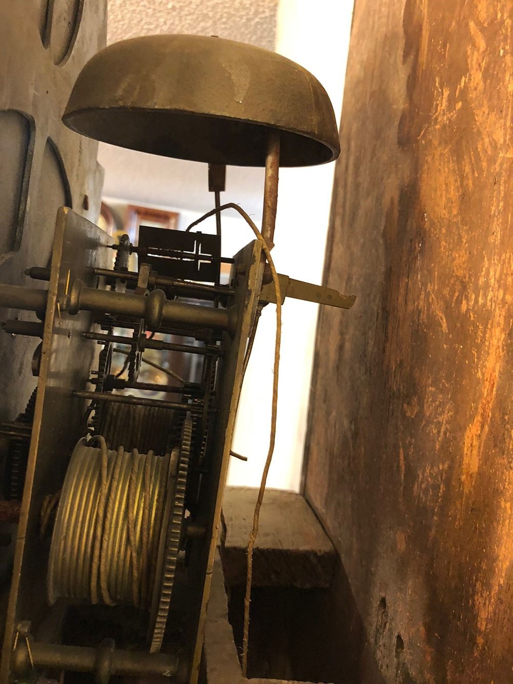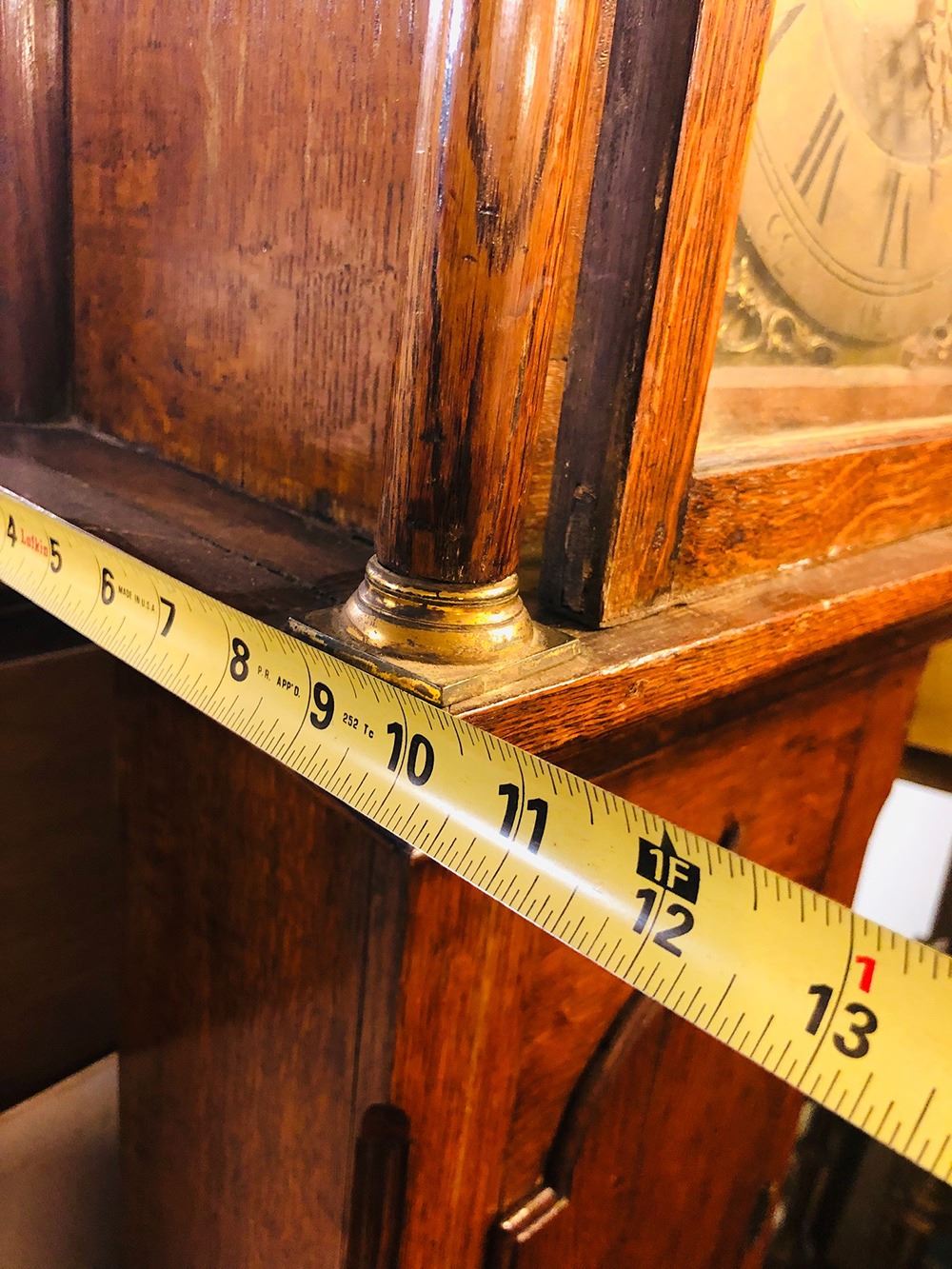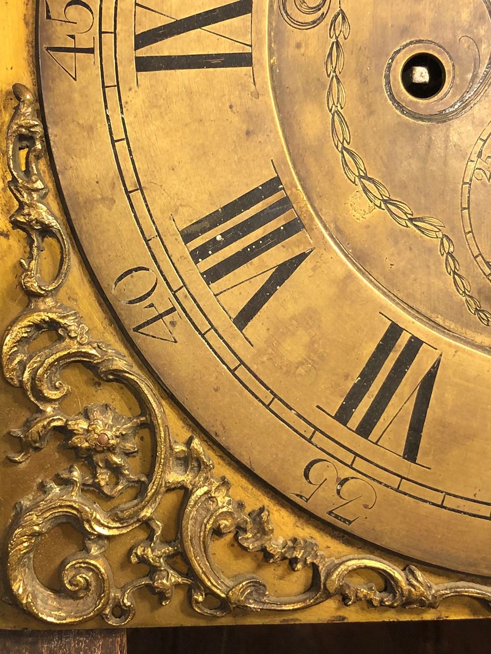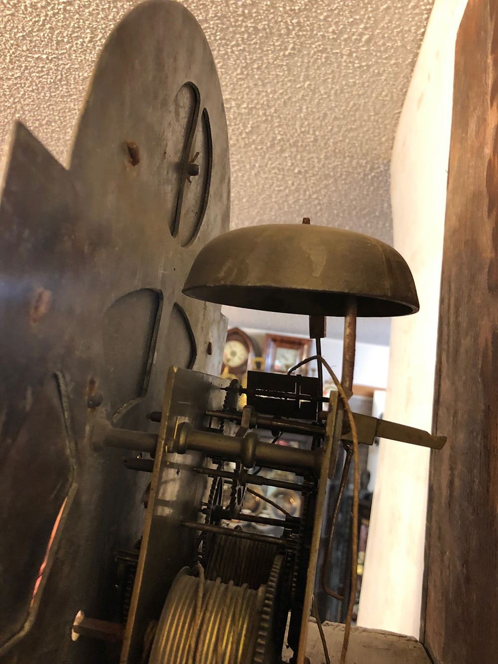Scottish, Oak grandfather clock, John Donaldson S. Shields o ornate brass dial. Measures approx. 88” tall x 19” wide x 10” deep. From historic Litchfield, CT estate.