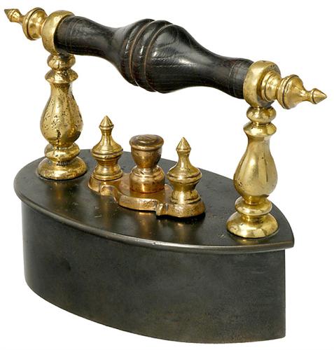 Scottish Slug Iron, c. 1880 With brass posts and finals, complete with slug, length 6 in.<Br>