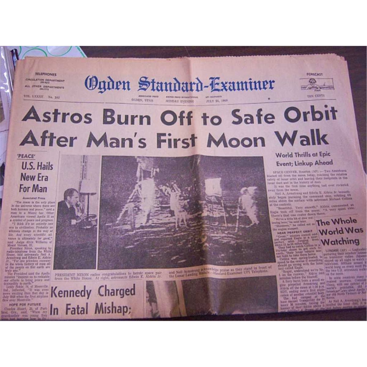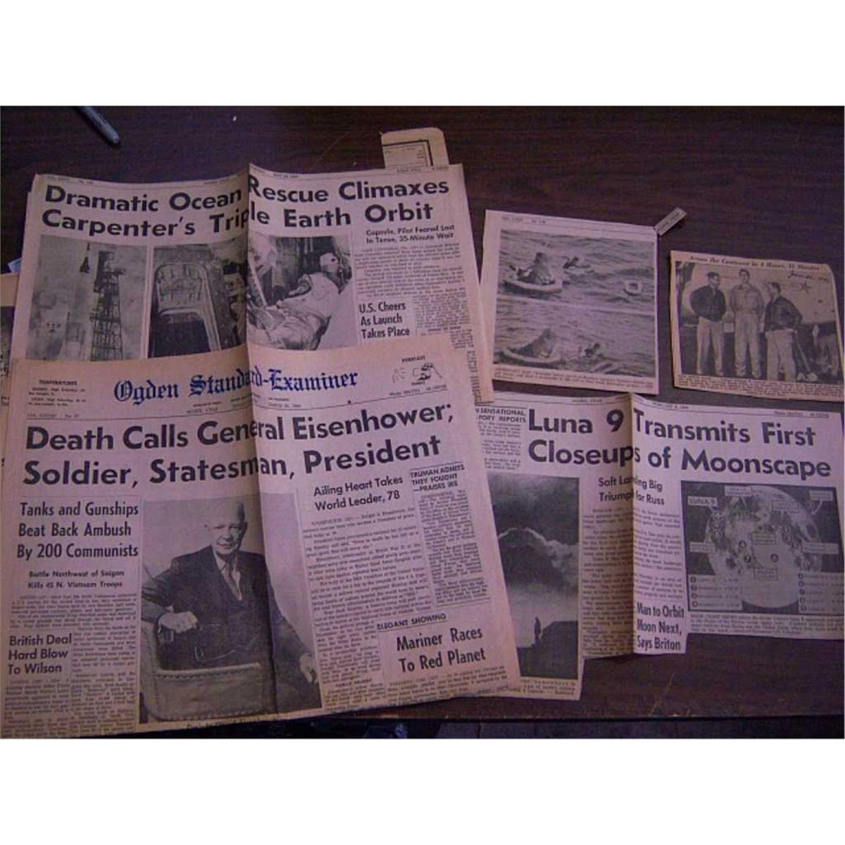 JFK Assasination, Apollo Space Program, Eisenhower Death Newspaper, First Man on the Moon Paper, War is Over Paper