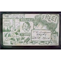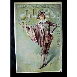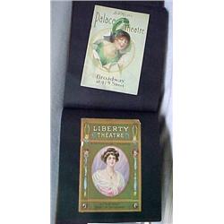 Scrapbook with 1943 1st day issue envelopes, Hitler cartoon, 1950's greeting cards, early 1900 theater programs including The Globe, Lyric, Liberty, The Palace, etc. (some glued to page) Estimate 100/200