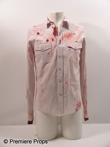 Charlie Walker (Rory Culkin) screen worn, very bloody, grey with orange tiny design snap button up the front, two Western style pockets, 'Salt Valley Western' shirt.