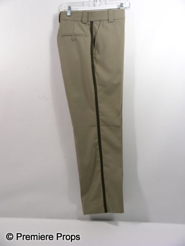 Deputy Hoss (Adam Brody) screen worn, khaki button up the front short sleeve with pockets on the front, 'Sheriff's Department Woodsboro County' patches on the sleeves "Blauer" uniform shirt, and khaki with brown striping 'Blauer' uniform pants.