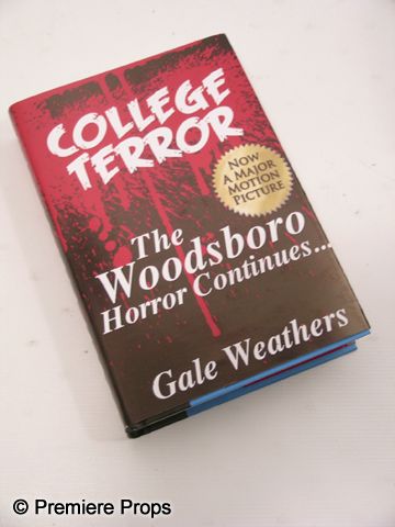 Scream 4 - Gale Weathers-Riley (Courteney Cox) screen used, 'College Terror The Woodsboro Horror Continues…' hardcover book cover with a real 'The Gates of Heaven' book under. (approx. 9 1/2" x 6 1/2")