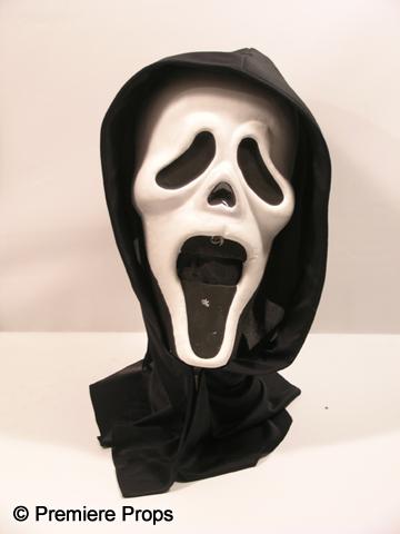 Scream 4 - Large Ghostface white and black styrofoam mascot style mask with hole on the top of the mouth with black hood. (approx. 16" long)