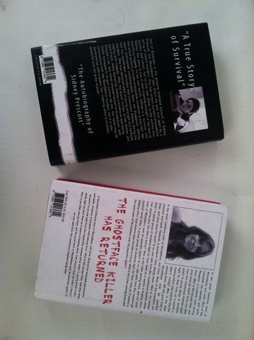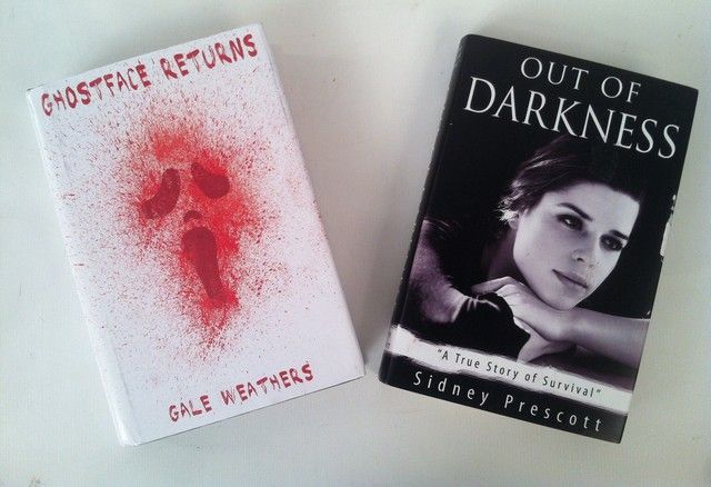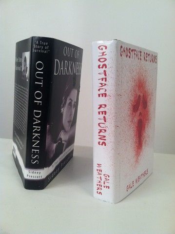 In "Scream 4" (2011) ten years have passed since the last installment, and Sidney Prescott (Neve Campbell) is now the author of a self-help book, and returns to her hometown at the end of her book tour. She isn't the only one with a book, as Gale Weathers (Courteney Cox) also has written the prophetic "Ghostface Returns". Of course, Ghostface does in fact return to the hometown to create horror for all! These are two hero screen used prop books from the film. They include "Ghostface Returns" by Gale Weathers and "Out of Darkness" by Sidney Prescott. The books themselves are props, with the actual hero screen used sleeves. Both approx. 9.5"x7".
