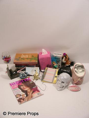 Scream 4 - Jenny Randall (Aimee Teegarden) screen used, Bedroom Set. Includes an alarm clock, skull, glass, tissue, books, and more things.