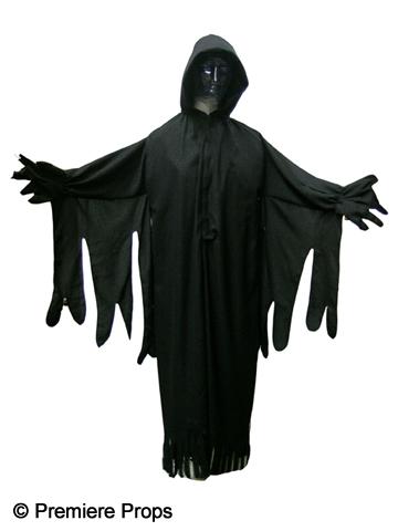 Scream 4 - Jill Roberts (Emma Roberts) screen worn, hero, black with sparkles, robe frayed at the bottom with built in hands and winged custom made robe with padded cushion built in inside. SPOILER ALERT: This is the robe that Jill Roberts wears when she is running around killing people as Ghostface.