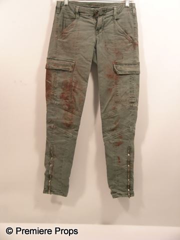 Jill Roberts (Emma Roberts) screen worn, bloody, white and purple plaid button up the front long sleeve 'Abercrombie' shirt, and faded green with cargo pockets 'J. Brand' pants. Includes wardrobe tag!