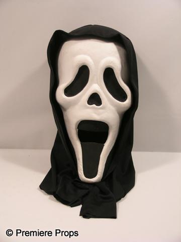 Scream 4 - Large Ghostface white and black styrofoam mascot style mask with hole on the top of the mouth with black hood. (approx. 16" long)