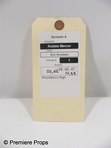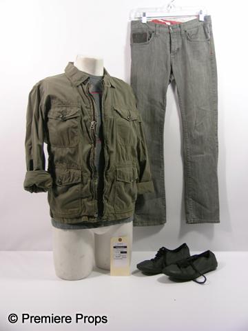 Scream 4 - Robbie (Erik Knudsen) screen worn, tan/grey zipper up the front with four front flap pockets long sleeve 'J.Crew' jacket, (size L) grey short sleeve with pink and blue lines, 'Emerica' shirt, (size S) grey fitted with two back pockets 'Vans' jeans, (size 28x30) and black lace up the front with black laces 'Aldo' shoes. (size 42) Includes wardrobe tag!