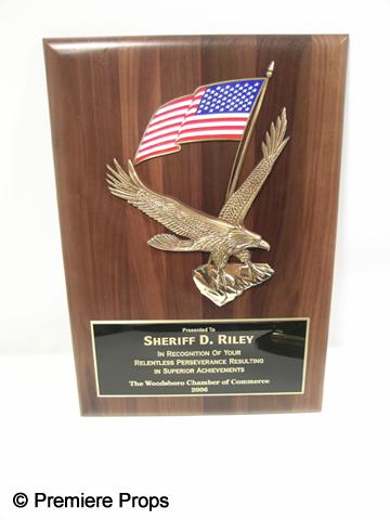 Scream 4 - Sheriff Dewey Riley (David Arquette) screen used from his police desk, The Woodsboro Chamber of Commerce Superior Achievement plaque. (approx. 20" x 14"). Oversized item. Additional postage required.