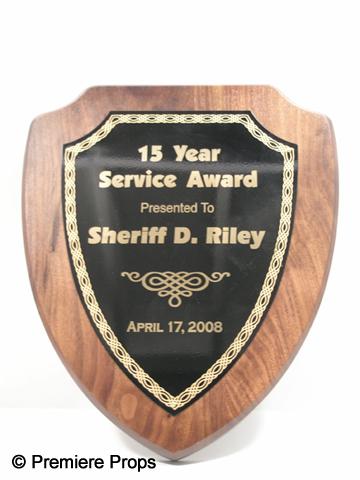 Scream 4 - Sheriff Dewey Riley (David Arquette) screen used from his police desk, 15 Year Service Award plaque. (approx. 12" long)