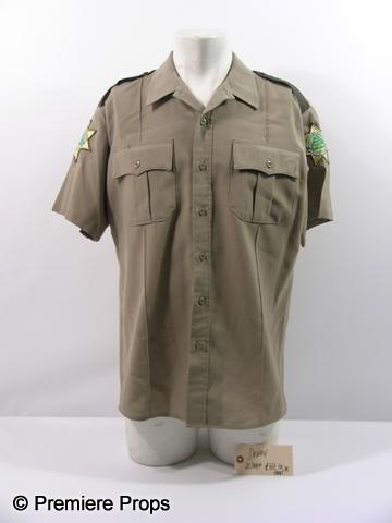 Scream 4 - Sheriff Dewey Riley (David Arquette) screen worn, slightly bloody from being hit on the head, khaki button up the front short sleeve with pockets on the front, 'Sheriff's Department Woodsboro County' patches on the sleeves "Blauer" uniform shirt. (size L) Includes wardrobe tag!