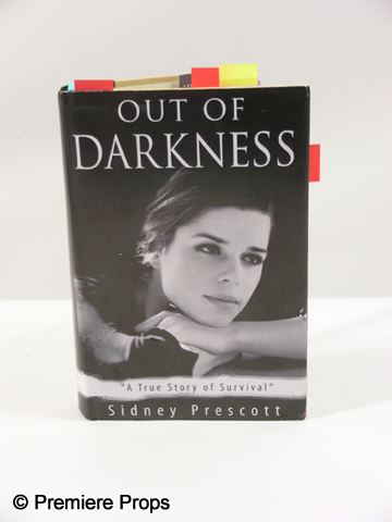 Sidney Prescott (Neve Campbell) screen used, hero, 'Out of Darkness "A True Story of Survival" Sidney Prescott' book cover over a 'Preacher's of Hate' book with page markers. (approx. 9 1/2" x 6 1/2")