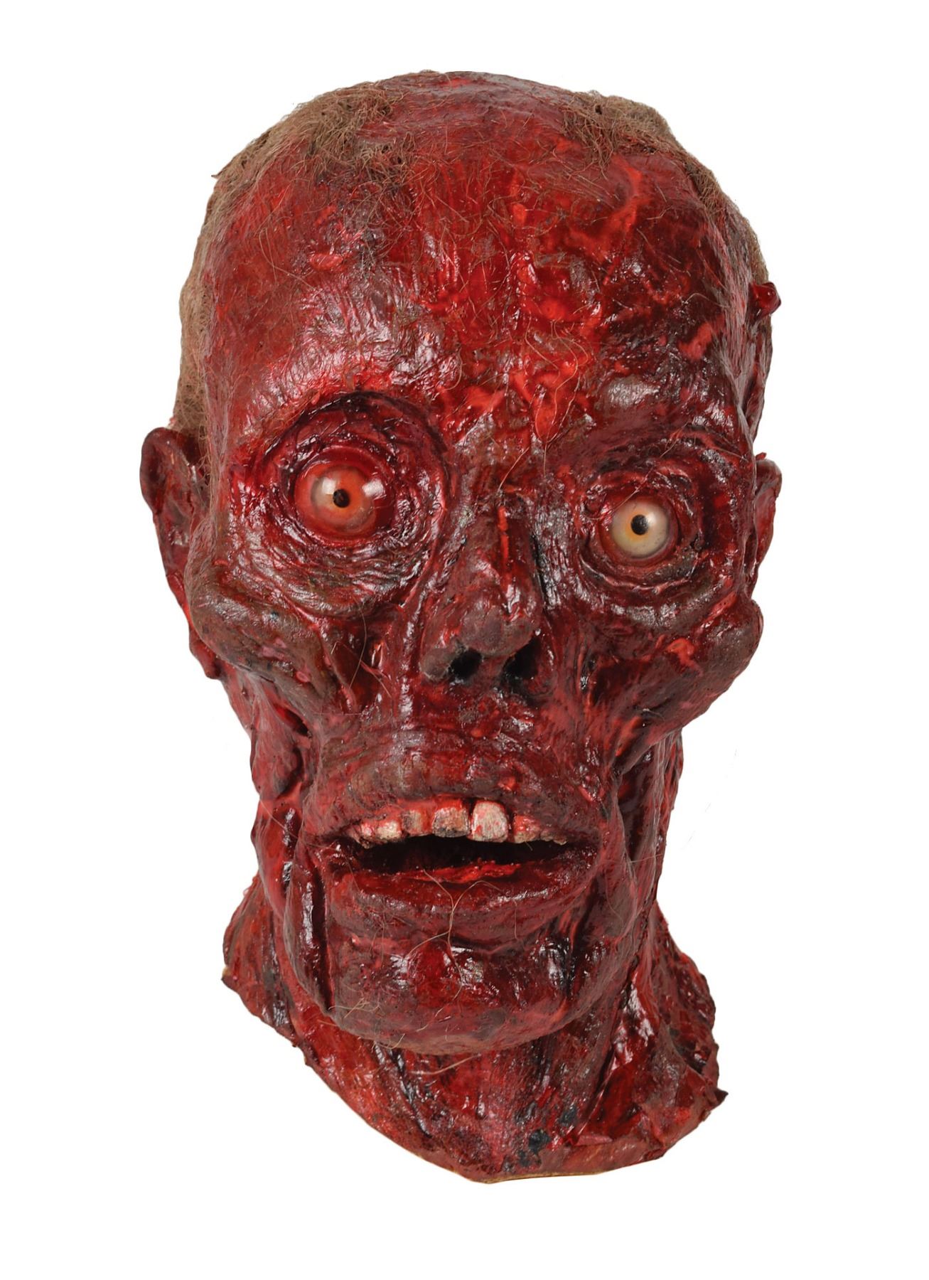 Terrific screen-used pair of bloody heads from the X-Files episode ‘The Pine Bluff Variant,’ season five, episode 18, which originally aired on May 3, 1998. The two melted heads, presumably male and female, both approximately measuring 5.5 x 10 x 8.5, are constructed of foam, latex, and faux hair and eyeballs, and feature realistic gory skin coloring and texture. In overall fine condition. Accompanied by a certificate of authenticity from Hollywood CPR, in part: “Please know that Hollywood Cinema Production Resources (Hollywood CPR) certifies that the item you have purchased on Sothebys.com through EntertainmentRarities.com was donated to Hollywood CPR from the studio that produced The X-Files.” While the lot originally contained six mannequin heads, only two are included.