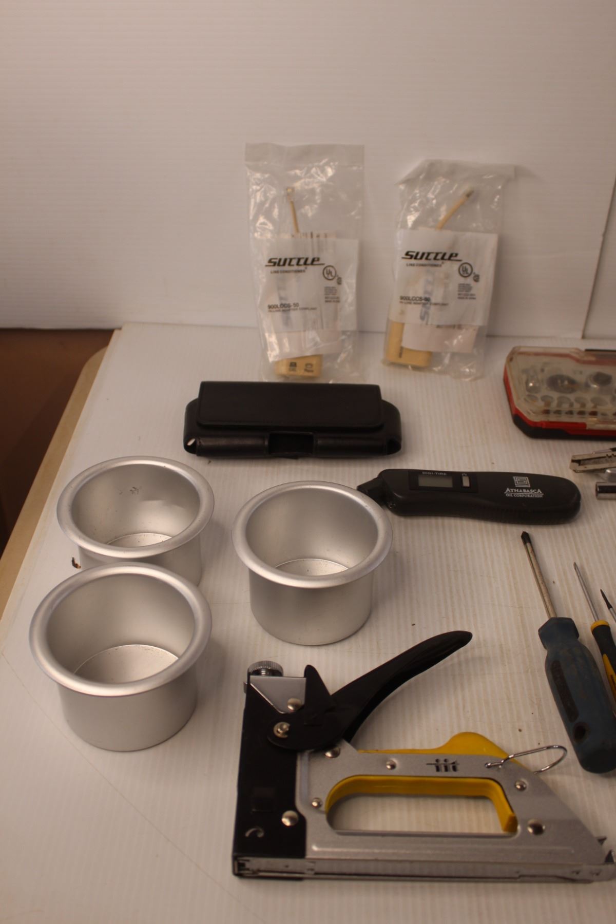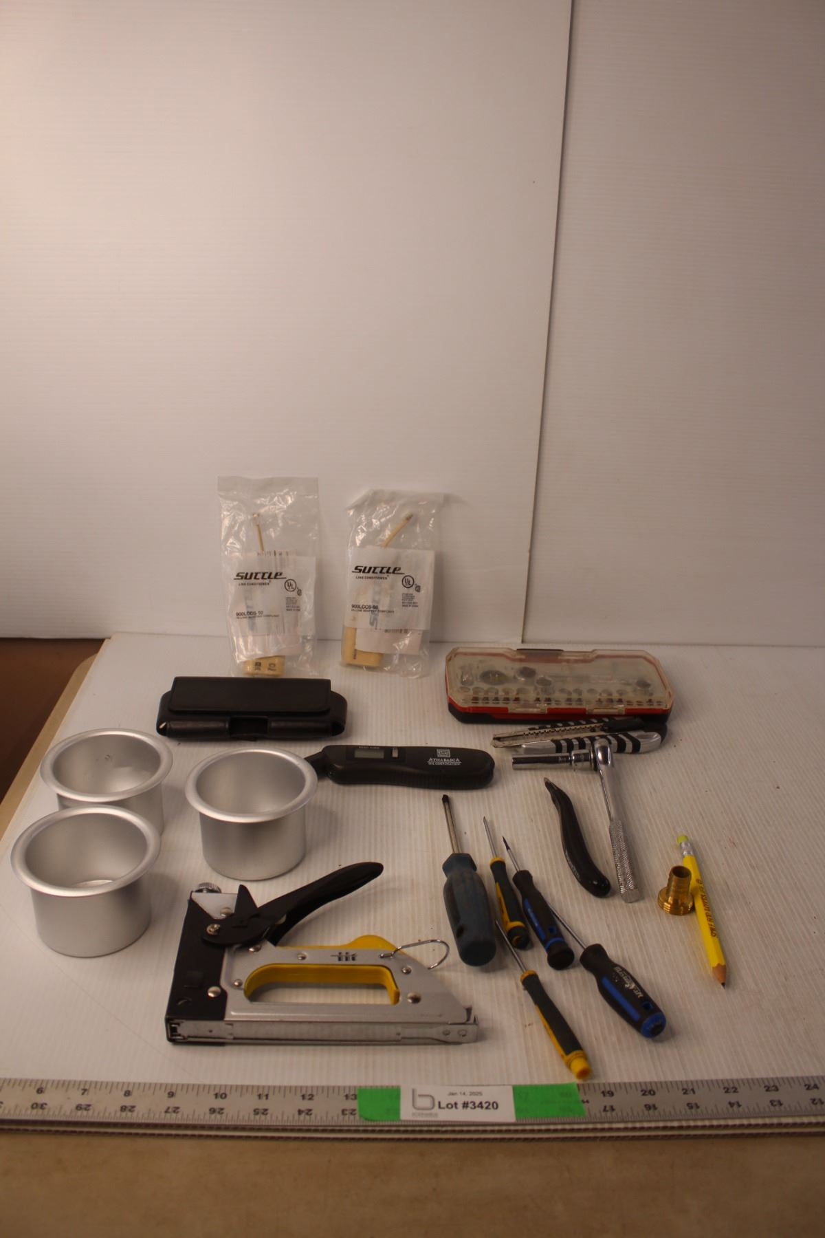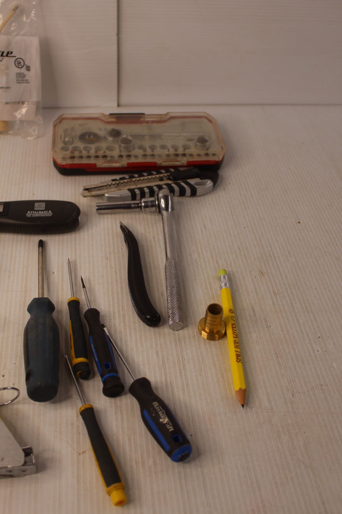 Screwdrivers, (2) Ratchets, Staple Gun, Misc.