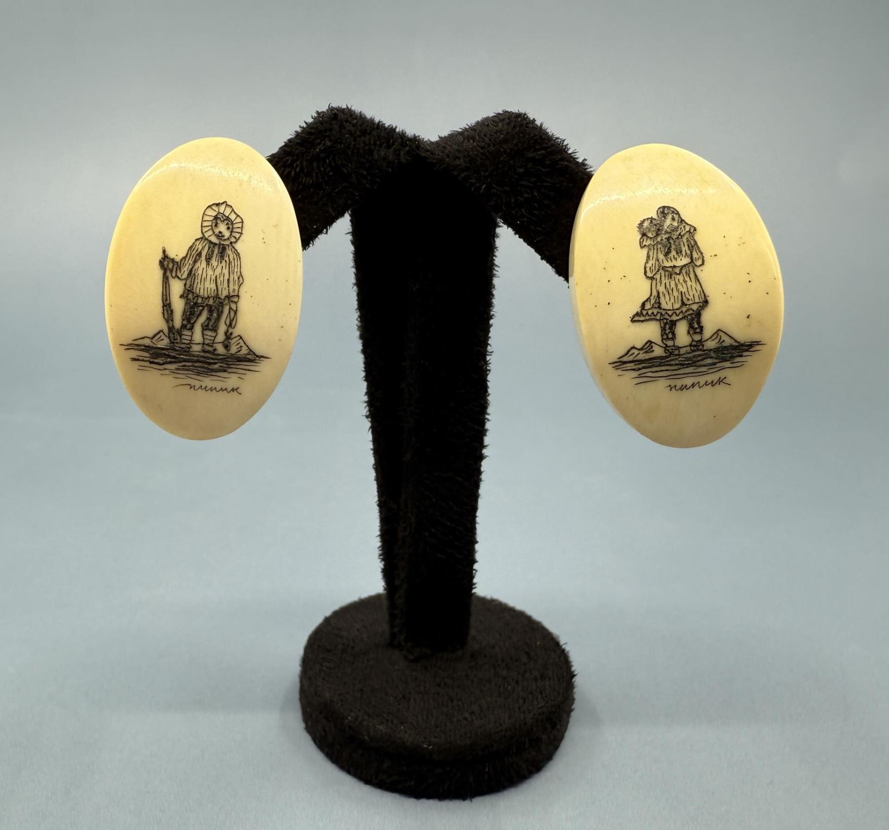 Carved Walrus Material. Signed Nunuk. 1" long, 5/8" wide