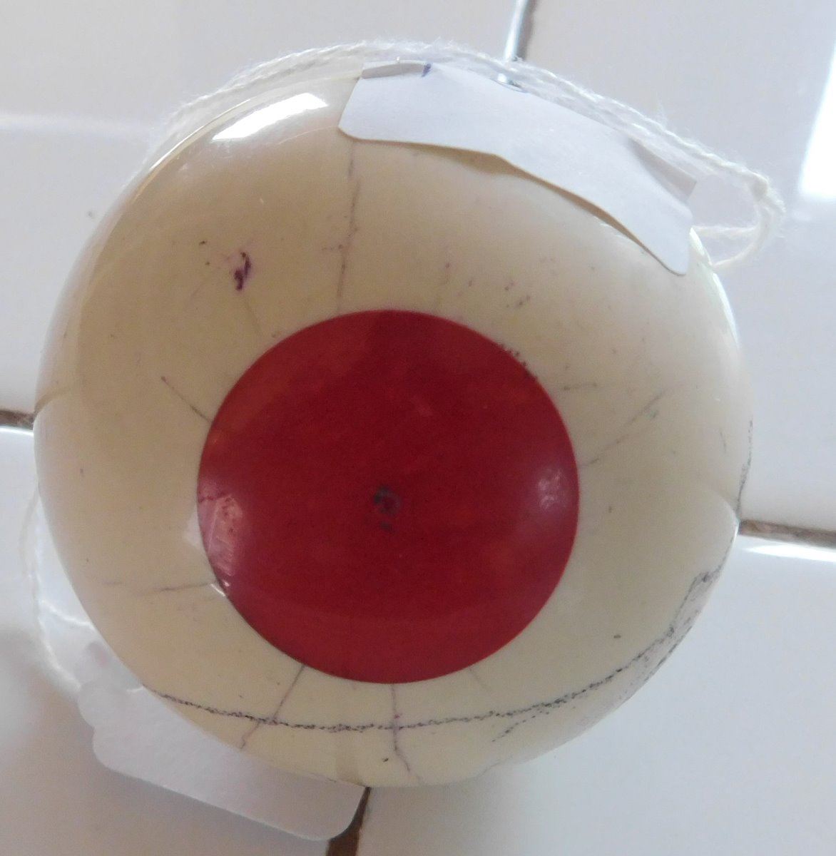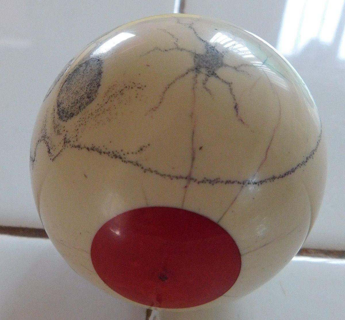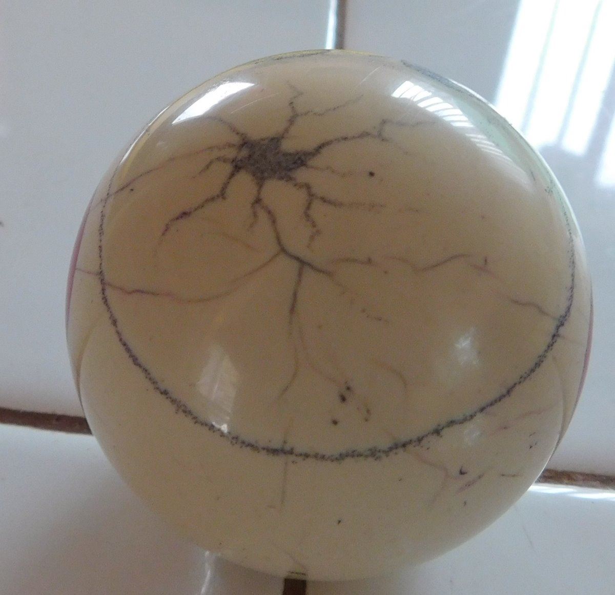 Scrimshaw Cue Ball, 20th century item. Made of plastic and measuring 2", original work by Steve Aho. Skull engraved on ball. Condition: Good, see images. Shipping: $15.50 w/insurance and signature.