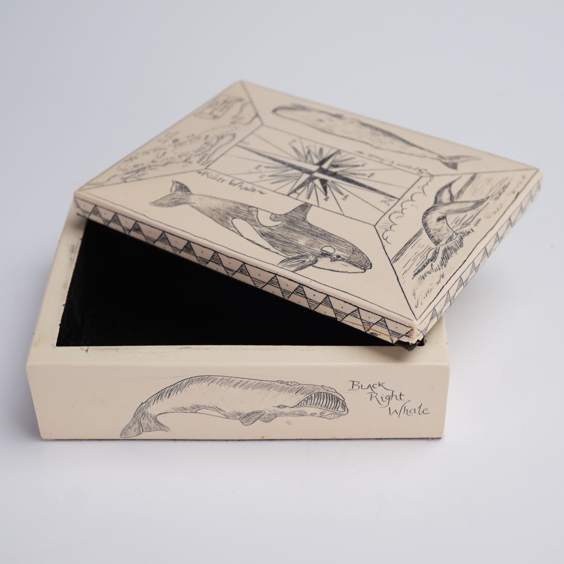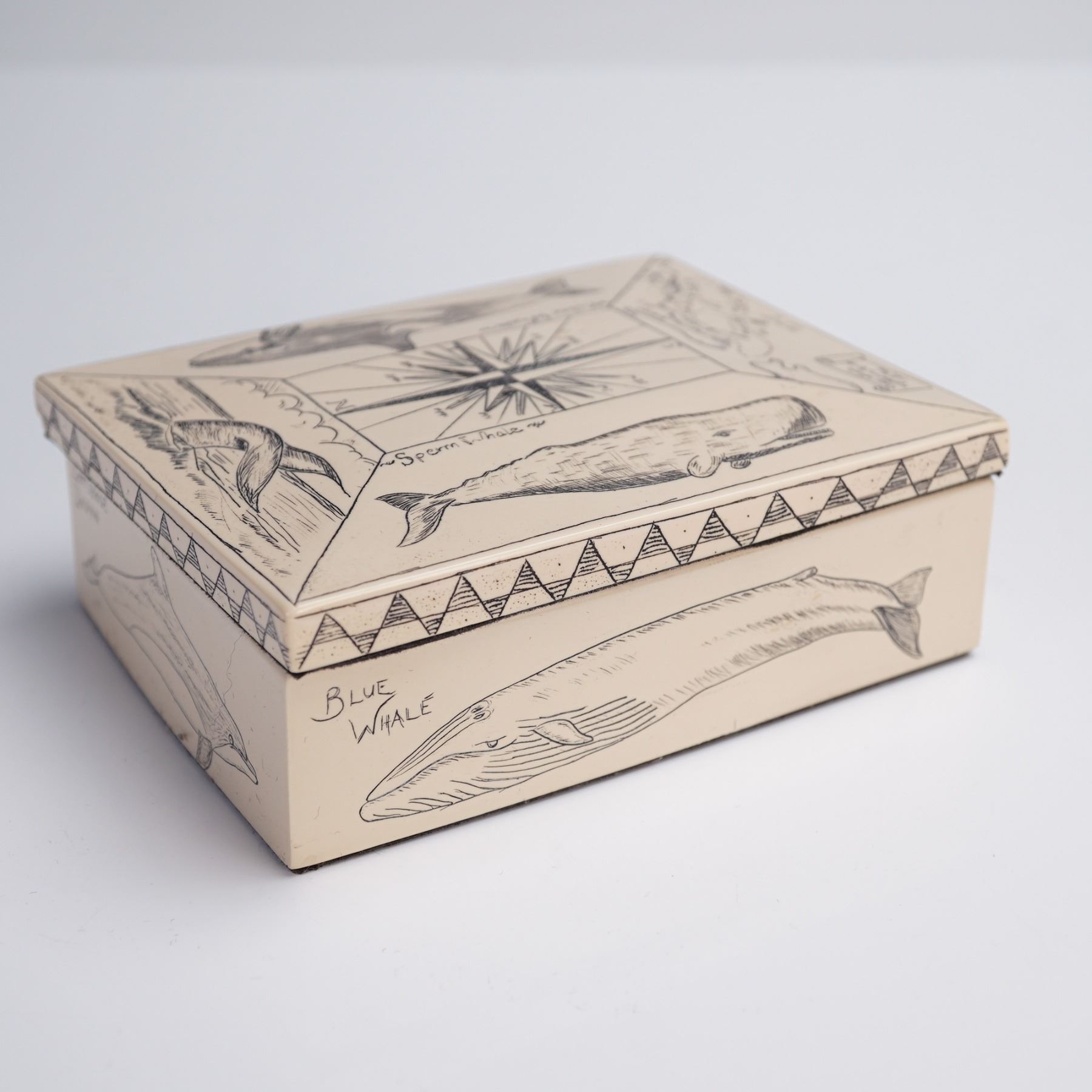 Scrimshaw Faux Bone Box with Lid, Marine Life Engravings