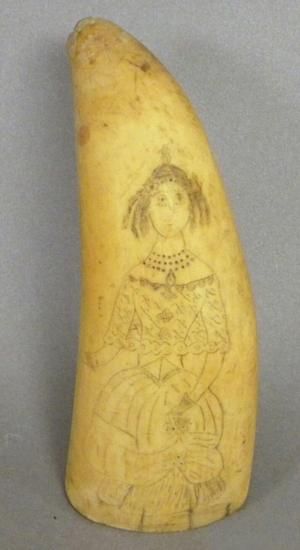 Scrimshaw Portrait of a Lady-decorated Whales Tooth, , lg. 4 in. MWF2386