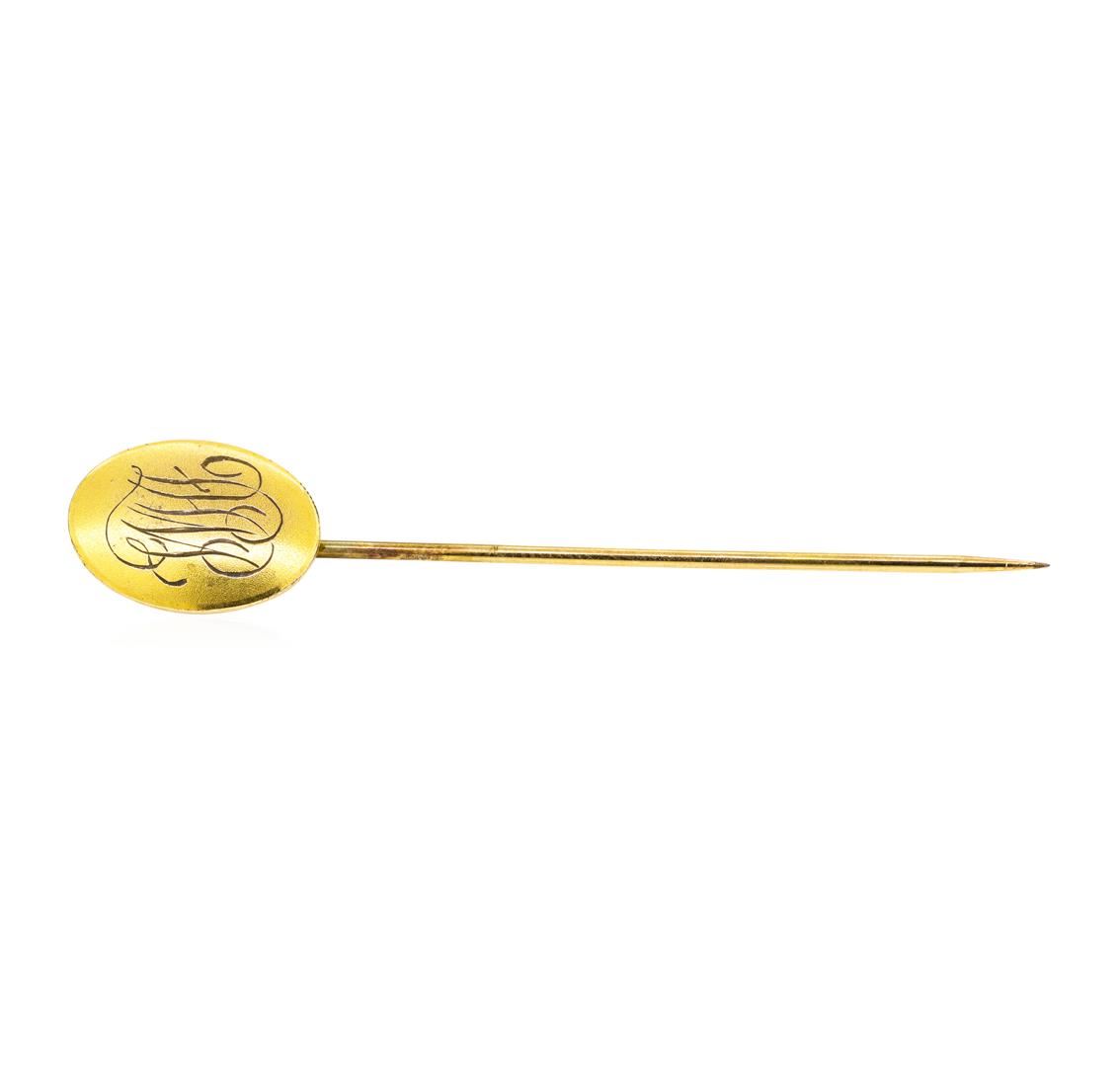 One stick pin featuring: 10KT yellow gold stick with a gold plated head weighing 2.4 grams.