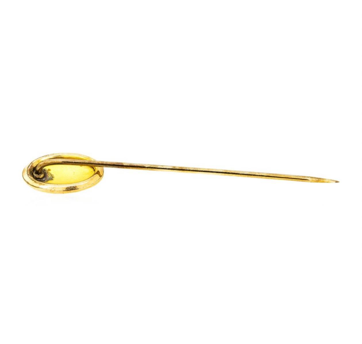 One stick pin featuring: 10KT yellow gold stick with a gold plated head weighing 2.4 grams.