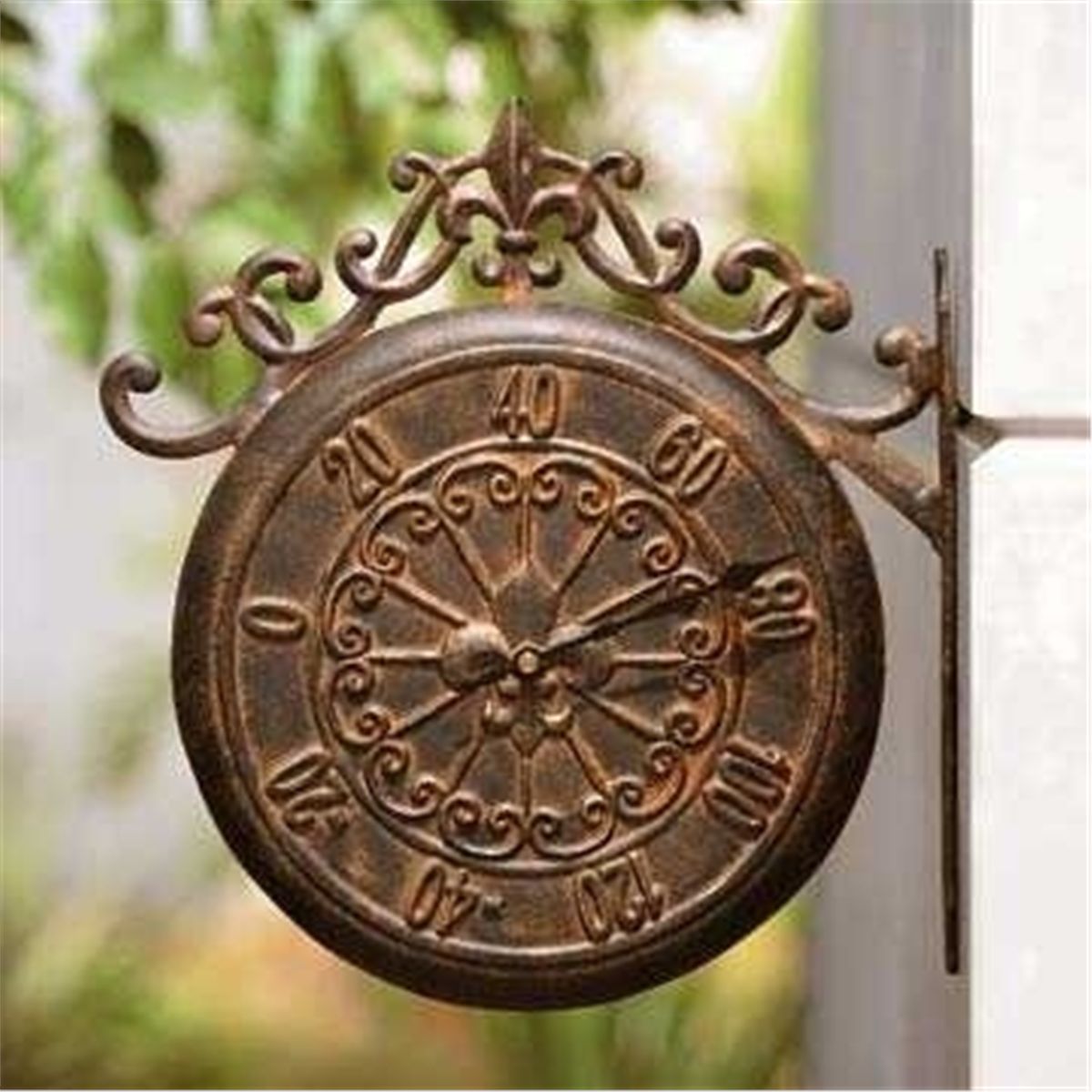 Scroll Clock & Thermometer - 13"H 11.5"W 2.5"D - - Aluminum - Clock On One Face With Thermometer On The Other