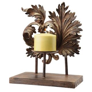 Scroll & Leaf Pillar Candle Holder - 11.5"H 9"W 7"D - Aluminum & Resin