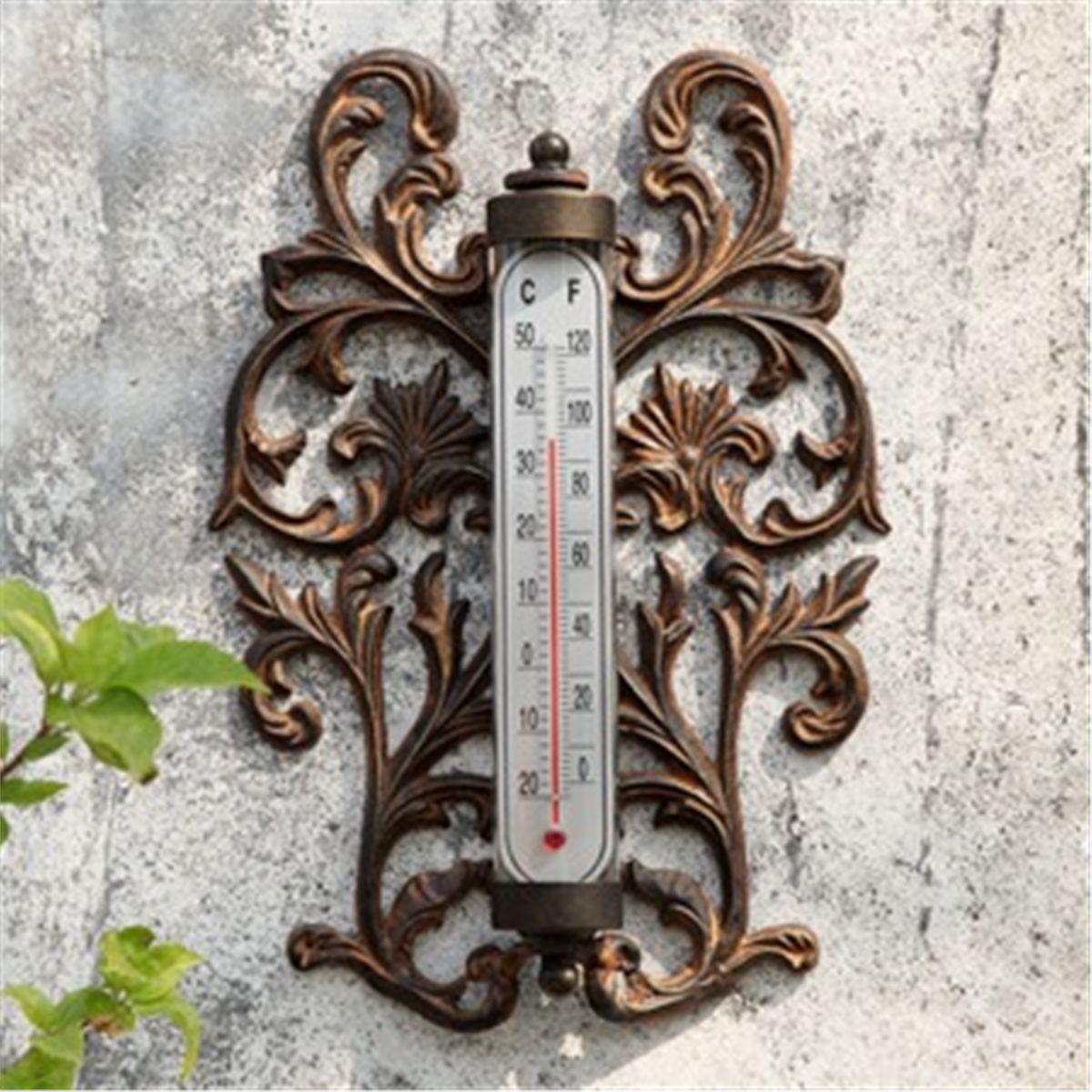 Scroll Wall Mount Thermometer - 14" X 10" X 2" - Aluminum & Glass