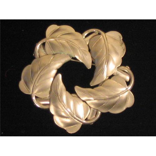 <tr><td>Title:Scrolling Leaves Nouveau Circle Brooch</td></tr>