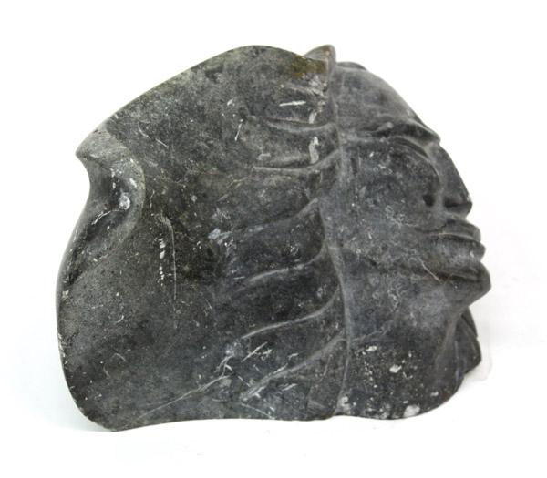 Stone sculpture, Woman's Face, by Lorna Fineday (Canadian, 20th Century), signed ''Fineday'' on bottom, overall: 5.5''h x 10''w x 7''d
