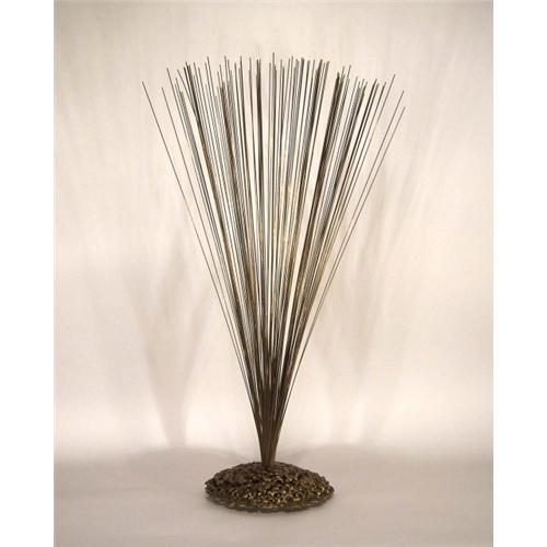 Sculpture in the style of Harry Bertoia. Molten brass base with brass rods. Base dimensions:10.5"L, 11.5"D... rods overall height 36".