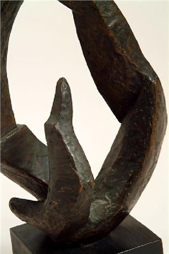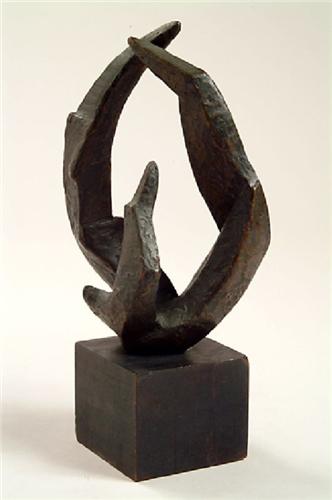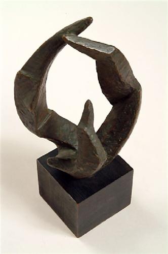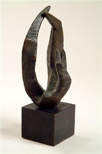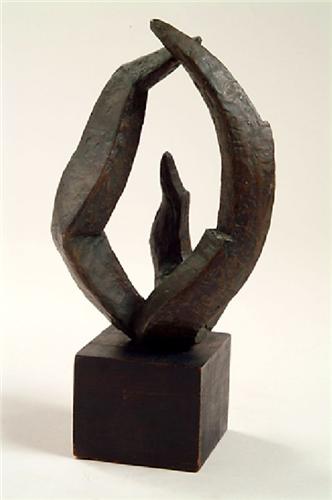 Unknown, bronze with black wood base, 10" by 7" by 6".