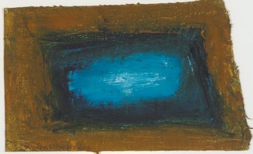 BLUE POOL signed and dated [2000] lower left; inscribed and signed again on reverse oil on unstretched canvas <BR>13 by 21cm., 5 by 8.25in. (irregular dimensions)