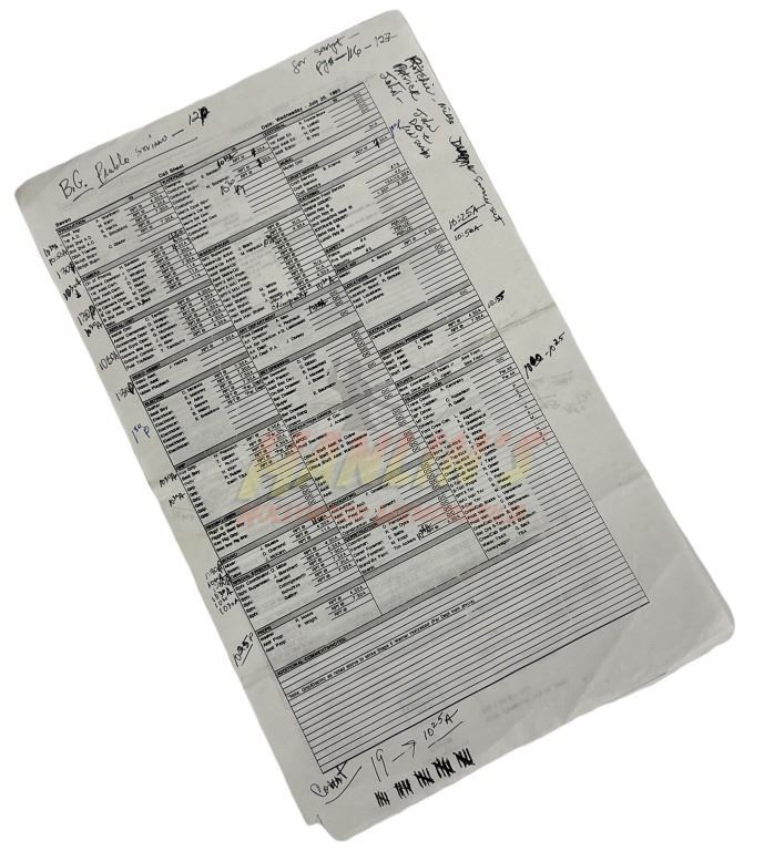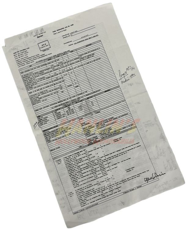 Original production used callsheet from the production of the David Fincher directed neo-noir crime thriller film 'Se7en' (1995) where, two detectives, a rookie and a veteran, hunt a serial killer who uses the seven deadly sins as his motives.