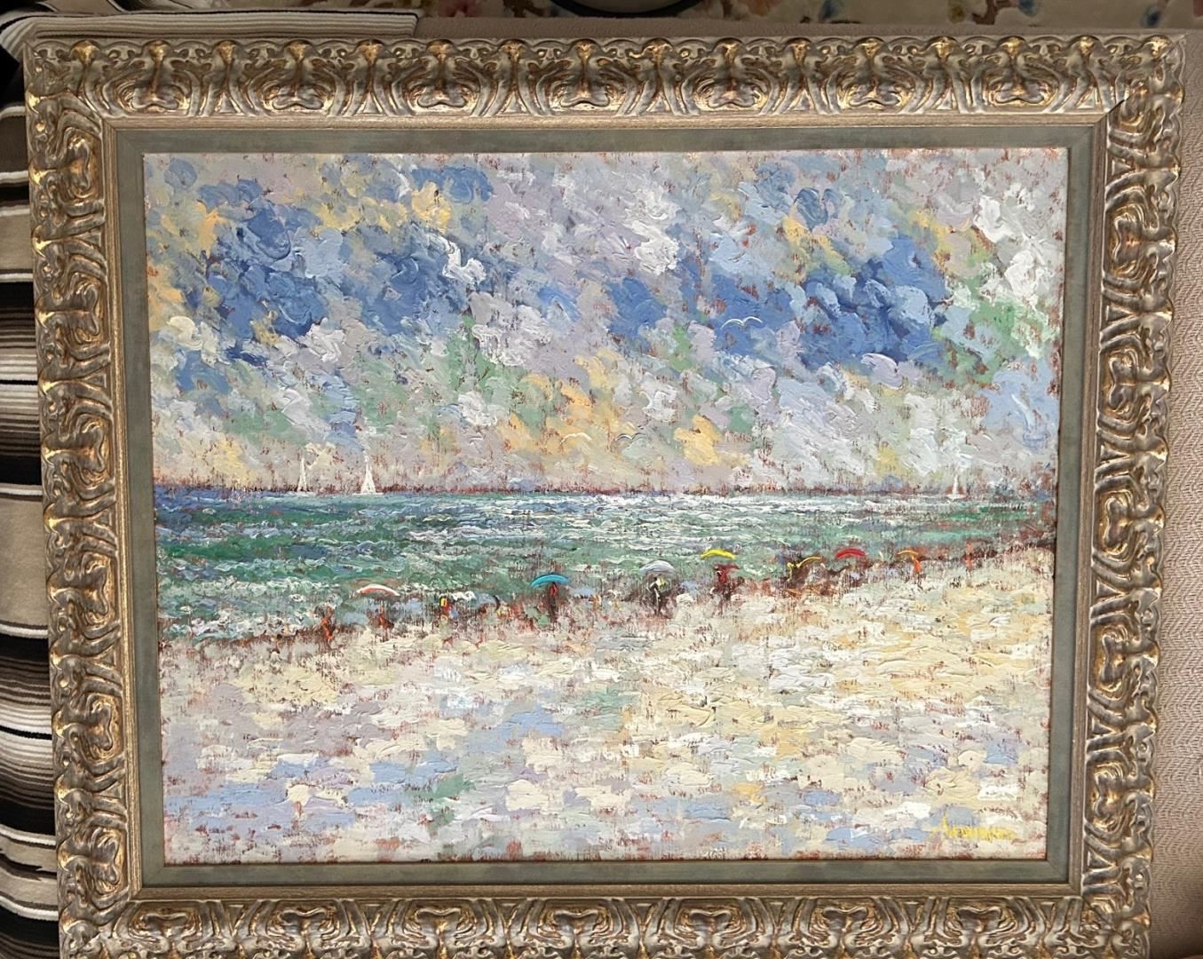 Canada's most famous Museum reknown impressionist, Samir Sammoun, has created this gorgeous original ocean setting in heavy impasto on linen, framed in a unique italian moulding & silk liner.
