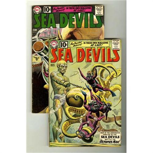 <B>Sea Devils #1 and 2 Group (DC, 1961).</B></I> Includes #1 (VG-) and 2 (GD/VG). Russ Heath covers and art. Approximate Overstreet value for group = $125.<BR><BR><b>Shipping:</b> Comics - Unslabbed (<a target="_blank" href="http://www.heritageauctions.com/common/shipping.php">view shipping information</a>)