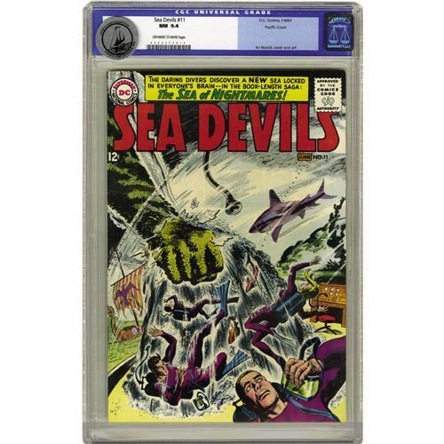 <B>Sea Devils #11 Pacific Coast pedigree (DC, 1963) CGC NM 9.4 Off-white to white pages.</B></I> This issue's cover and interior art are credited to Irv Novick. Overstreet 2006 NM- 9.2 value = $115. CGC census 3/06: 1 in 9.4, none higher.