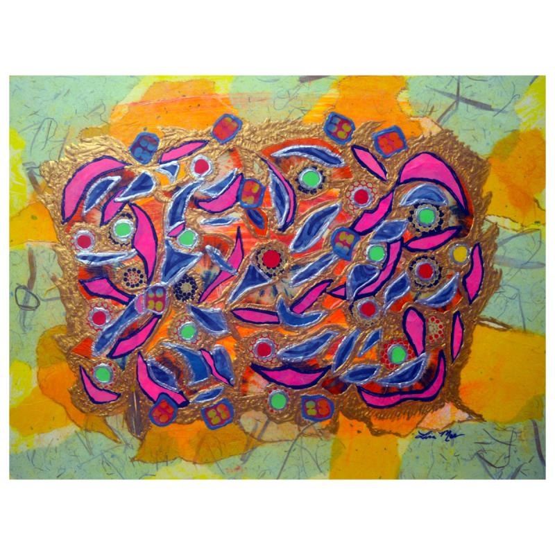 "Sea Grass With Pebbles" is an original mixed media painting on canvas by Lisa Mee. Incorporating acrylic, metallic paint, paper and fabric, this piece is hand signed and comes with a letter of authenticity. Measures approximately 18" x 24".