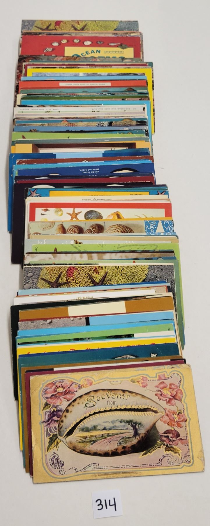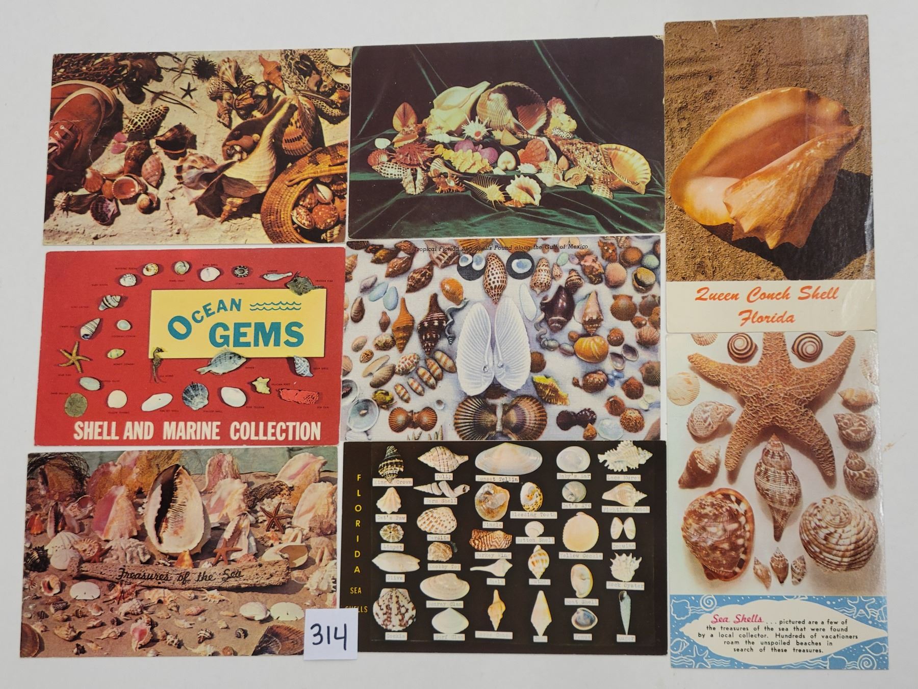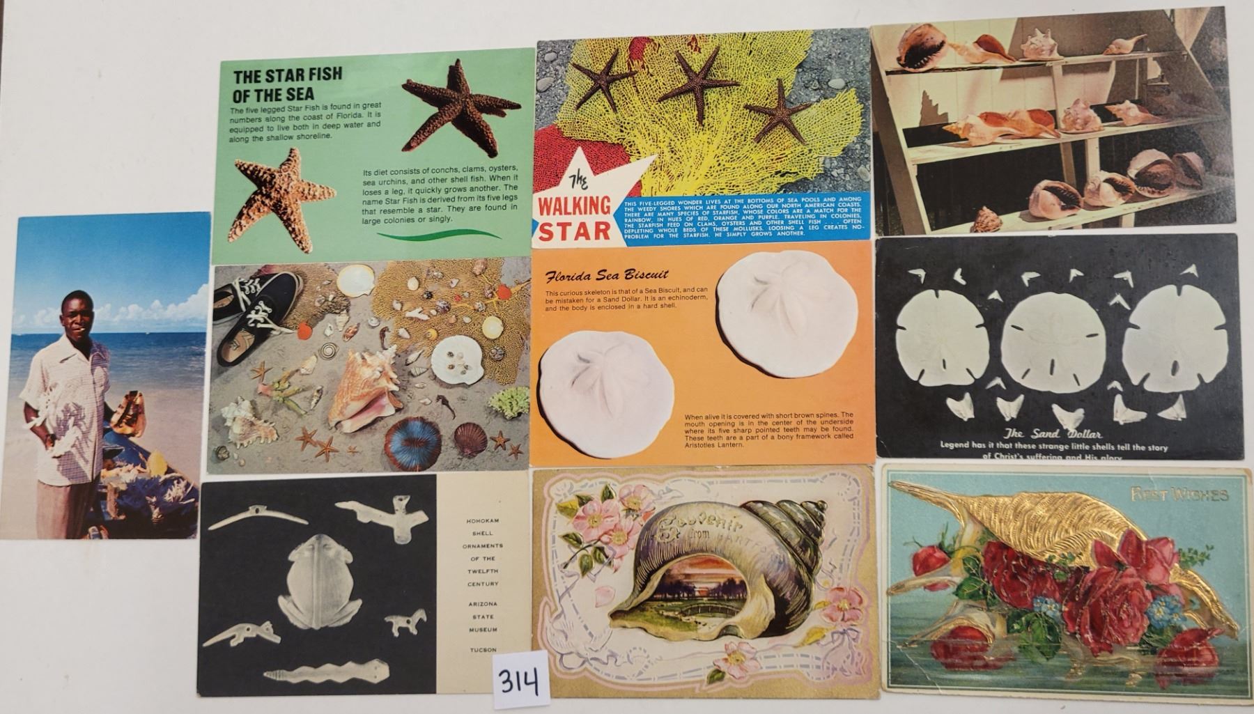Over 200 sea life & sea shell postcards. Standard size chrome. Some duplication.