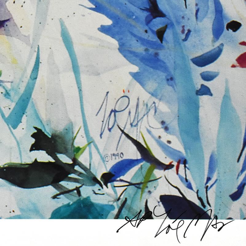 "Sea Of Emotion" is a limited edition lithograph on paper by Zoe Mac from an AP edition, hand signed by the artist. Includes Letter of Authenticity. Measures approx. 29.5" x 23" (border), 26" x 20" (image). Please note: there may be minor wear on the corners and edges.