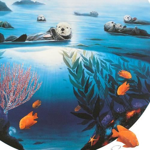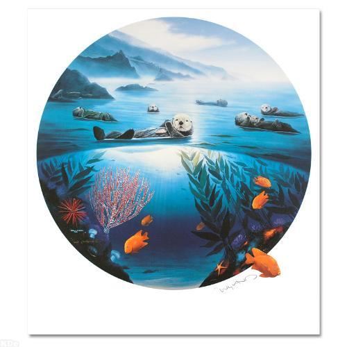 The artist's true love of nature is so clearly conveyed in each of his works with exacting detail. "Sea Otters" is a limited edition lithograph on paper, numbered and hand signed by Wyland! Includes Certificate of Authenticity! Measures approx. 25.5" x 29" (with border), 24" diameter (image).