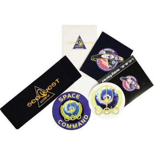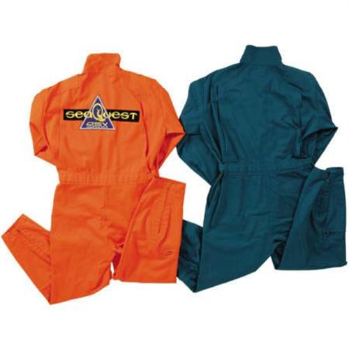 <B>"SeaQuest DSV" Screen-Worn Costumes and Props.</B></I> Behind the surface lies the future, and by the mid 21st century the TV series, <I>SeaQuest DSV</B></I> (1993-96) finds humankind living in and policing the ocean. This lot contains two jumpsuits: the first is teal blue from the medical department, the second is orange from sciences with United Earth Oceans patch emblems on arms and name badges applied with Velcro to left chest with the vessel's logos. Also in this lot, a blue, denim chairback with "SeaQuest DSV" silk-screened in large orange letters on the front and "Director" on the back. Also, a magnetic circular UEO sign, a similar sticker, a Captain's science notebook and UEO ship stationery from the production. Acquired from the auction held by the production company in 1996 after the show completed its final season. <I>Authenticated by the world's foremost curators of television artifacts, The Comisar Collection of Beverly Hills.</B></I><BR><BR><b>Shipping:</b> Clothing, Costumes & Jerseys (<a target="_blank" href="http://www.heritageauctions.com/common/shipping.php">view shipping information</a>)