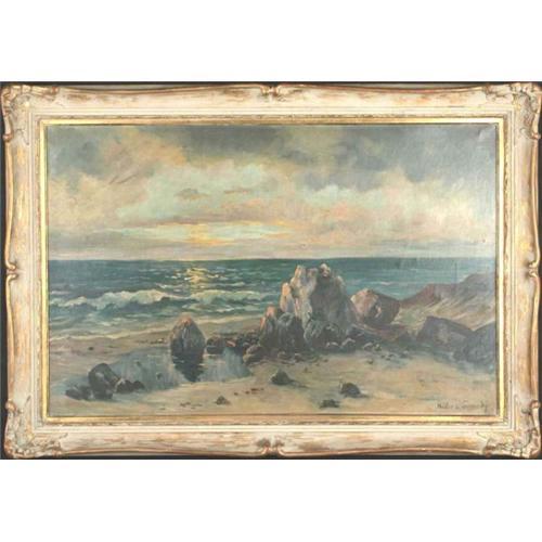 Oil on Canvas landscape painting entitled ?Sea Shore?, painted by Moller L Tomrady