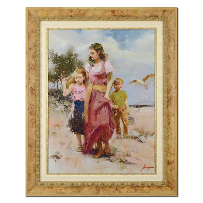 Pinos portraits allow glimpses into intensely personal intimate spaces conveying emotion through rich warm color and sensual brushwork. "Sea Spray" is a hand embellished limited edition giclee on canvas by Pino (1939-2010). The piece is numbered hand signed custom framed and includes certificate of authenticity. Measures approx. 42" x 51.5" (frame) 30" x 40" (image). This item requires special handling and may have a longer than usual turnaround.
