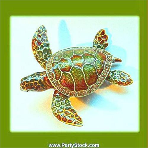This exquisite Sea Turtle is suspended in "flight". Looks as if it is swimming in the deep blue sea! The shell is framed with dozens of sparkling, genuine, Swarovski Crystals, and it opens to reveal a secret compartment within. Thick enamel and painstaking details make this a truly splendid work of art. Over four inches across. <BR> Sea turtles (Superfamily Chelonioidea) are turtles found in all the world's oceans except the Arctic Ocean. There are seven living species of sea turtles: Flatback, Green, Hawksbill, Kemp's Ridley, Leatherback, Loggerhead and the Olive Ridley. <BR>Height: 4.25 Inch <BR>Width: 4 Inch<BR>Additional Information: Each of these items is meticulously crafted from fine pewter. Then, most are embellished or coated in solid 24 Karat Gold. Finally, the piece is hand enameled and lavishly inlaid with genuine Swarovski crystals by skilled artisans. Many of our collectibles are lined in velvet or fitted with ring inserts to make a most splendid jewelry presentation. A ll pieces are finished on the inside with a sparkling, swirled enamel. Our collection adds the definitive touch to any gift-giving occasion.A lso, this collection is issued in limited editions and will become a valuable keepsake to those who possess them, for years to come