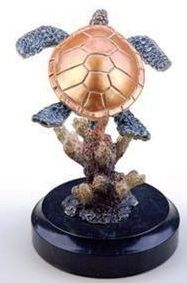 Sea Turtle Bronze Sculpture - 5"H 4"W 4 "D - Great Attention To Detail - Beautiful Finish - Lost Wax Cast